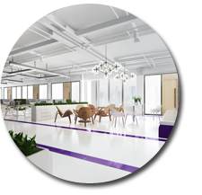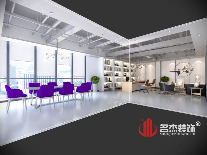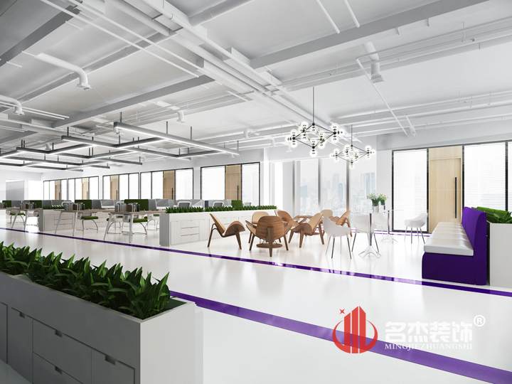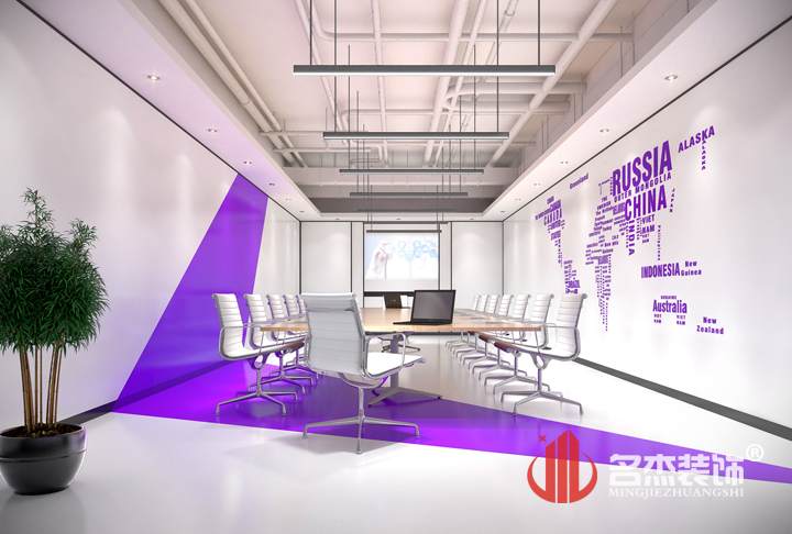 设计说明:现代、科技、简约和国际化是本次办公室设计的主题,雕塑般的建筑美感通过黑白紫系列及纯净的色块得到表现。 极简风盛行,或许是受到了国际最前沿的极简设计风的感染,设计师主要以白色极简风做主色调,深紫为点缀色进行设计,营造烘托出和康集团科技美容的主营概念。