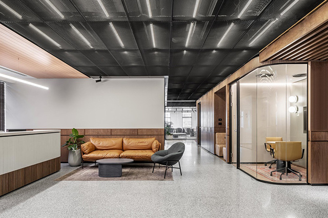在入口处设置的可伸缩纸椅可以改变不同的形式,是这里的空间更加灵活和有趣,同时反映了空间垂直延伸,空间的体积和框架结构给办公室带来了各种有趣的空间和意想不到的室内连续性,这样也创造以了一个独特的结构。