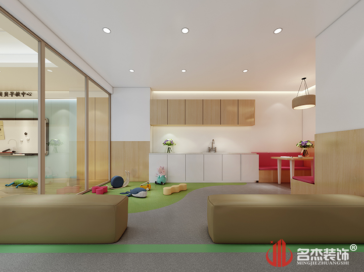 设计说明:本精英贝贝早教以蒙氏教育理念为理念,主张由日常生活训练着手,配合良好的学习环境、丰富的教育,让儿童自发的主动学习,自己建构完善的人格;在本次设计桃子视频免费下载观看动漫中均以日式风格为主题,每个教室主要运用木色和绿色的格调,营造一个健康和谐的气氛。在安全方面,严格根据早教设计的规范标准来设计,空气流通、日照充足、排水通畅。总平面布置功能分区明确,布局合理,按照教育、课室、亲子课室、游戏活动、生活等不同功能进行分区,方便使用管理,避免相互干扰,有利交通疏散。其总平面空间上加域烘焙区,这样小朋友通过亲DIY烘焙点心、品尝点心获得内心满足,开展亲子早教烘焙活动。