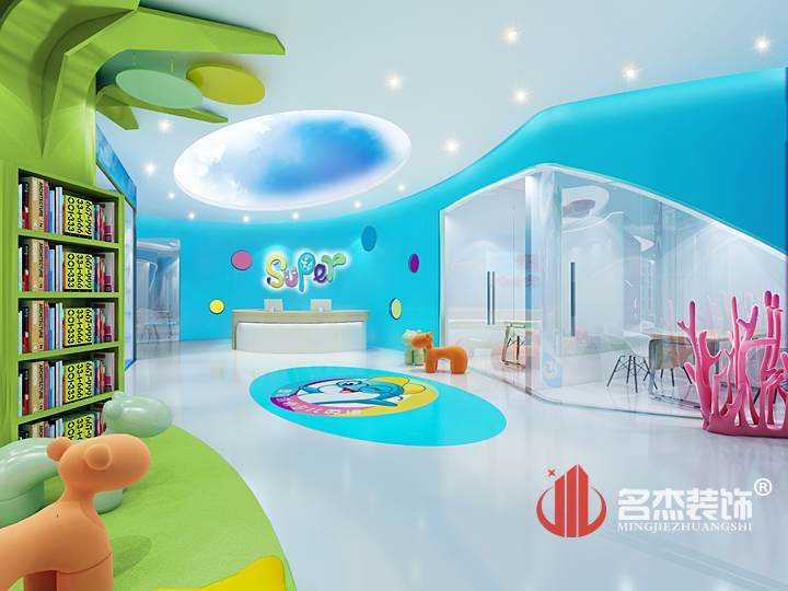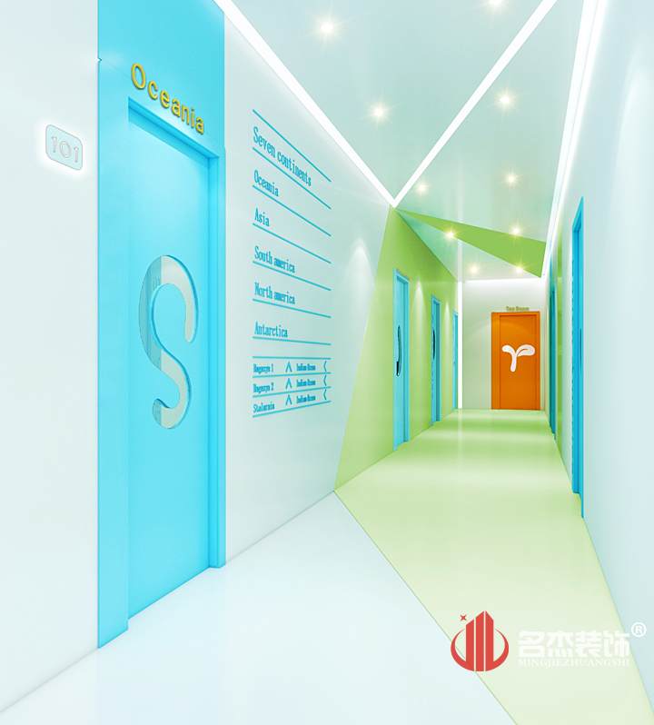 设计说明:本次培训机构桃子视频免费下载观看动漫设计案例设计主题以海洋汇流联系到整个世界,主色调以海洋蓝色,为主色调,绿色地球为以及阳光橙为点缀色,每个科室以七大洲为主题做设计,从而通过蓝色海洋涓流联系起来,主体验课室则是一个完整的地球为主题,既以世界为局部同以世界为全,通过颜色,墙身涂鸦贴图,空间主题给孩子一个个既新奇又有趣的教育环境,从而通过课室认知整个世界开发大脑。